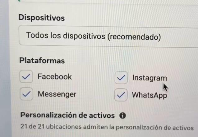 Más abajo vas a ver una sección que dice “ubicaciones” (son los lugares donde aparecen tus anuncios). Fíjate si te aparece un mensaje que dice “Estado de WhatsApp incluido”.